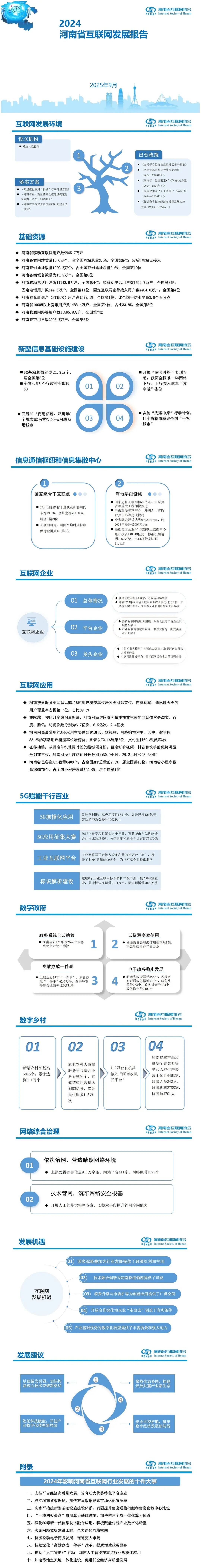 2025年9月,河南省互联网协会正式发布《2024河南省互联网发展报告》(以下简称《报告》)。《报告》共分5篇12章,系统总结了2024年河南省互联网行业基础资源、技术创新、融合应用、网络综合治理等方面的发展现状,集中呈现了互联网行业在加快推进行业现代化发展、赋能我省实体经济数字化转型等方面取得的积极成效,并提出了促进互联网行业繁荣发展的建议。